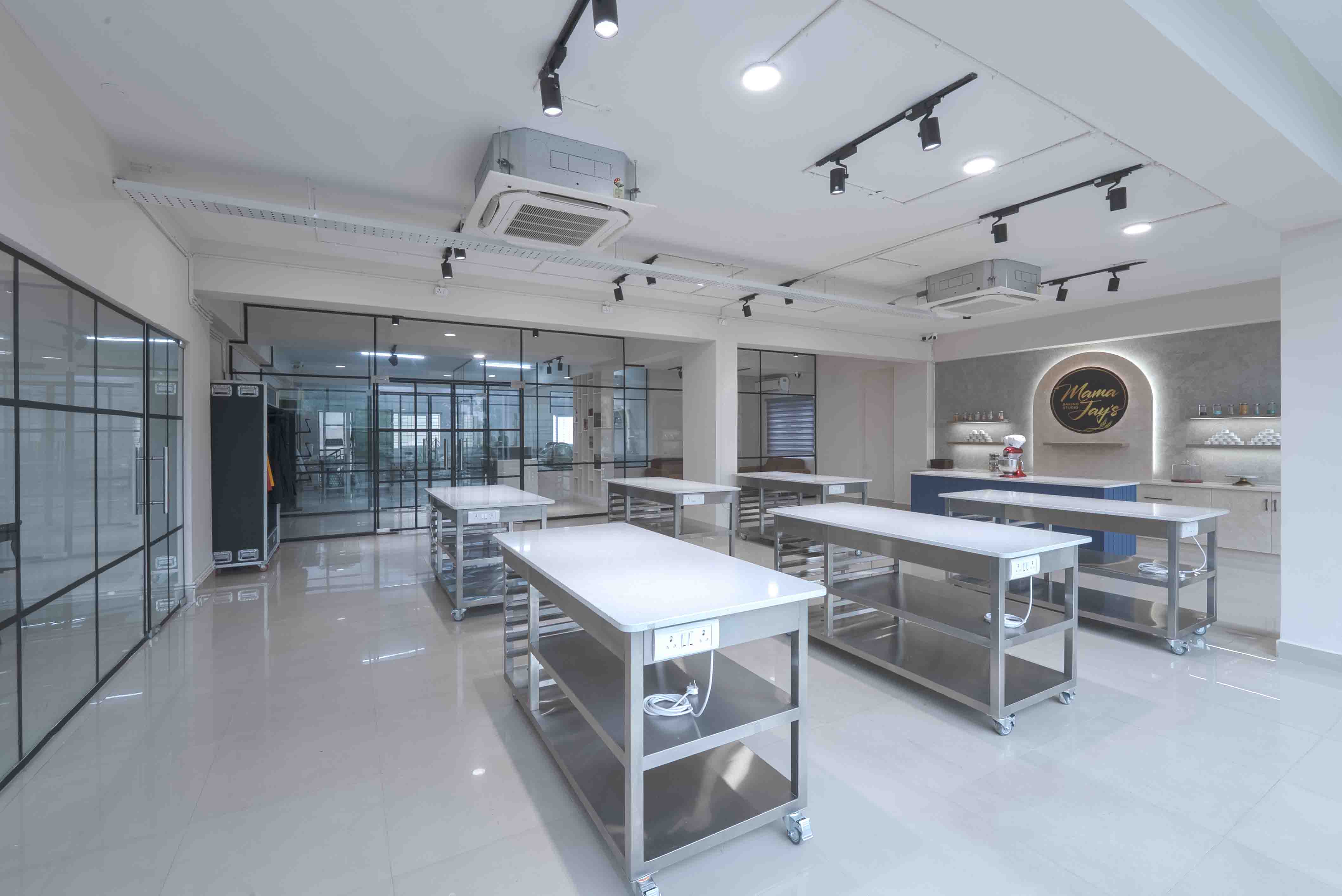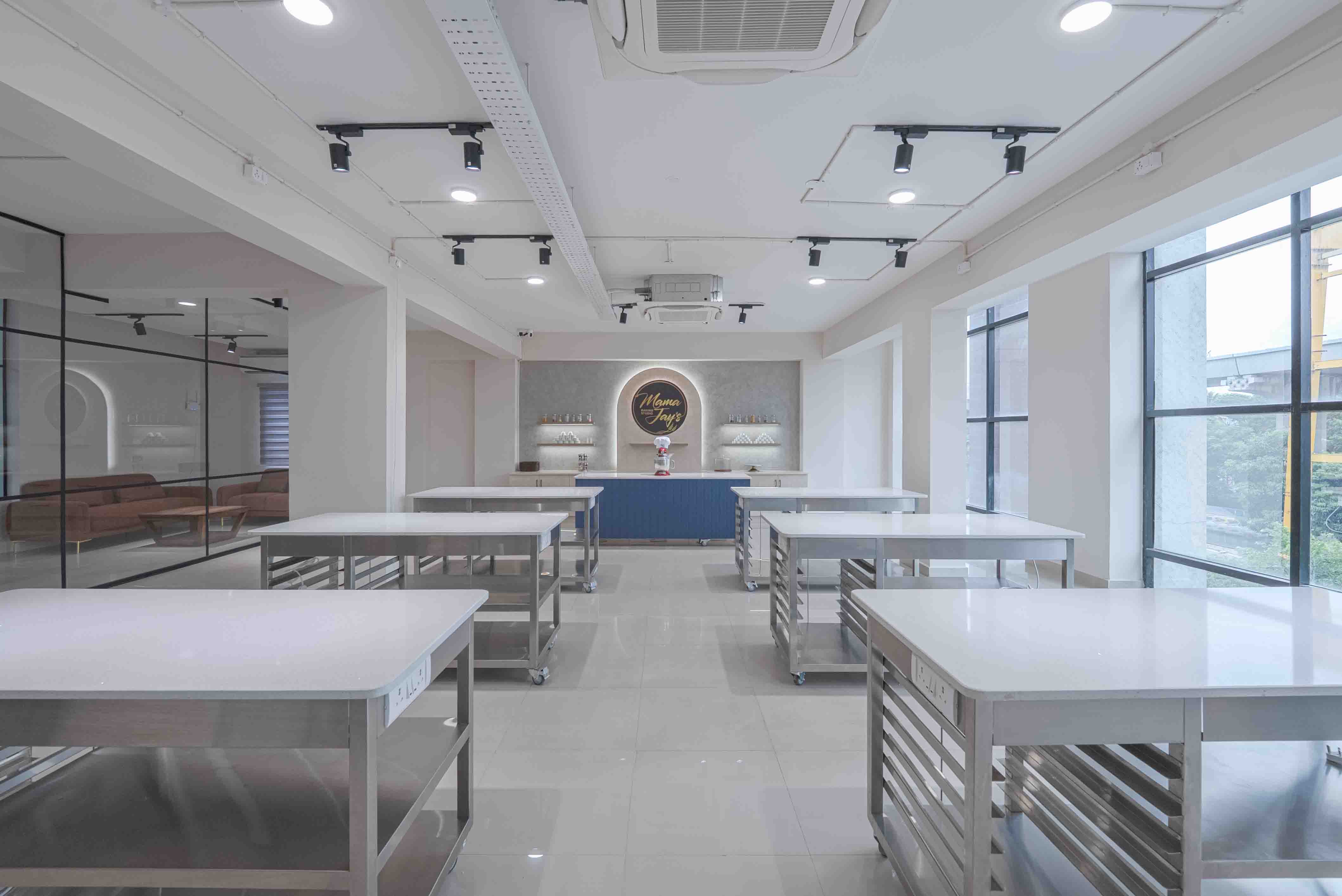 Mama Jay’s Baking Studio is an exclusive 3000 sq. ft. studio + kitchen at HSR Layout, Bangalore. Designed for both fun workshops and professional baking experiences.